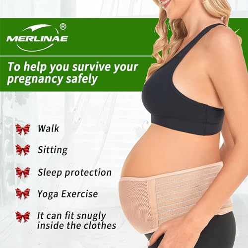 Merlinae® Belly Bands for Pregnant Women – Pregnancy Belly Band, Pregnancy Support Belt, Maternity Belt,Postpartum Band Care Breathable Abdomen Support and Pelvic Support – One Size Beige