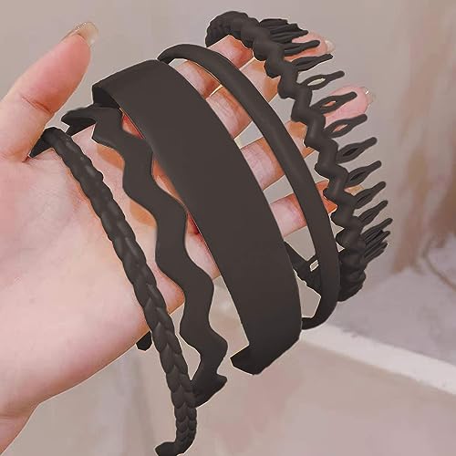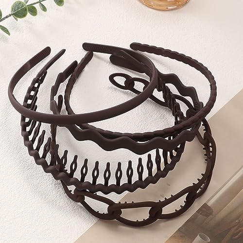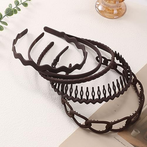 MHDGG Plastic Hair Bands with Teeth,5Pcs Non Slip Hair Comb Head Bands Hair Accessories Outdoor Sports Headbands for Women Men,Coffer