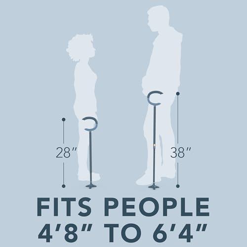 SIMPLE ADJUSTMENTS – No more pesky, painful push pins. The C Grip lightweight cane is simple to adjust – simply press, slide, and set. Designed to eliminate that annoying ‘click’ that most canes make when you walk. Our walking canes are suitable for heights ranging between 4’8″ and 6′ 4″ – walking cane length 28″ to 38″