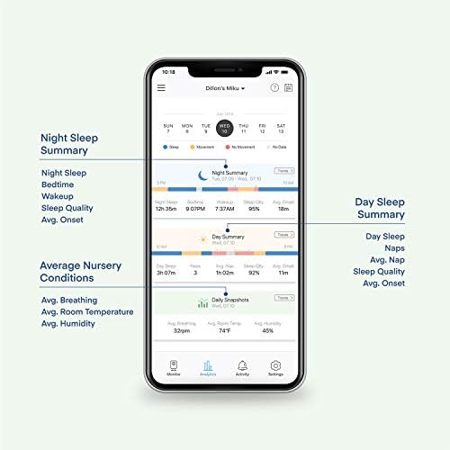 TRACK BREATHING & SLEEP WITH NO WIRES OR WEARABLES: Miku Smart Baby Monitor works with your smartphone to track breathing, movement, sleep patterns and nursery conditions such as temperature and humidity. Note: Wi-Fi connectivity is subject to individual routers.