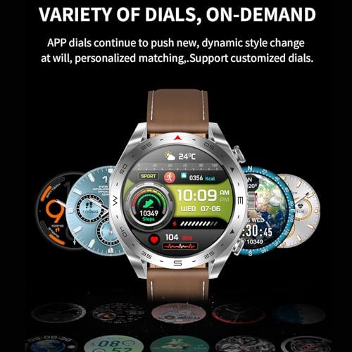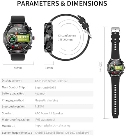 【Design and Versatility】 This smartwatch features a metal dial design with a 1.52-inch HD display and built-in earphones (strong magnetic attachment, won’t fall off). It comes with two interchangeable straps – a faux leather strap for formal occasions exuding luxury and a silicone strap for outdoor activities.