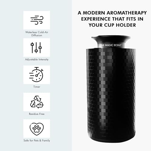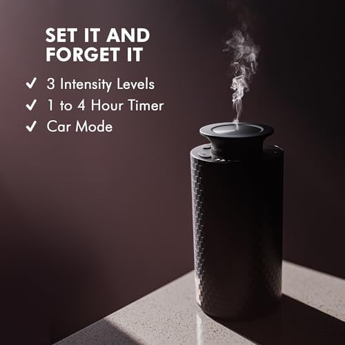 Mini Car Diffuser – Waterless Diffuser Scent Machine for Home & On-The-Go – Intensity Control & Timer – Waterless Oil Diffuser – Rechargeable Car Scent Diffuser up to 400 sq. ft.
