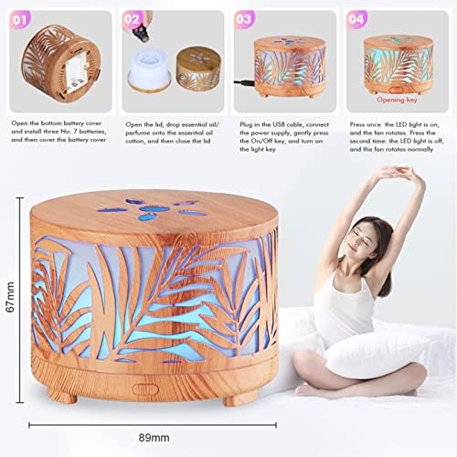 Elegant Metal Woodgrain Artwork: Our mini essential oils diffuser put the metal with woodgrain together, make the whole mini diffuser more texture, small size will not take up too much space (3.5*2.6inch) suitable for table, bedroom, living room,portable diffuser can also take it on a trip, Even outside you can also have a reassuring scent