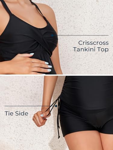 MiYang Maternity Tankini Swimsuit Criss Cross Back Bathing Suit Ruched Tie Side Pregnancy Swimwear Two Piece