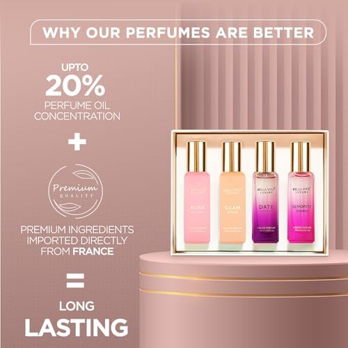 BELLAVITA proudly presents Luxury Gift Set for Women, an exquisitely curated selection. Our four best-selling perfumes- ROSE Woman, GLAM Woman, DATE Woman, and SENORITA Woman, have been carefully chosen to resonate with the modern woman who shows and owns boldness and unwavering determination, an individual who fearlessly follows her own rules and leaves an incredible mark wherever she goes.