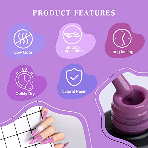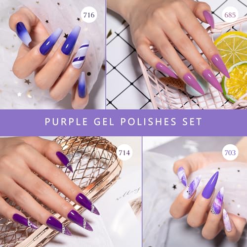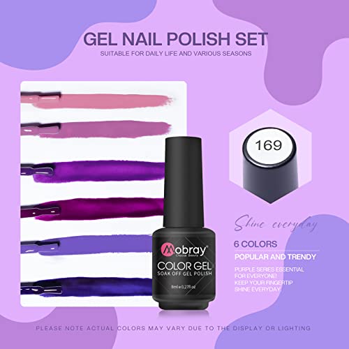 Mobray Gel Nail Polish Set-6 Colors Purple Gel Polish Kit Lavender violets Dark Blue Tone nail gel polish,Soak Off U V LED Lamp,DIY Home Manicure Gifts for Women