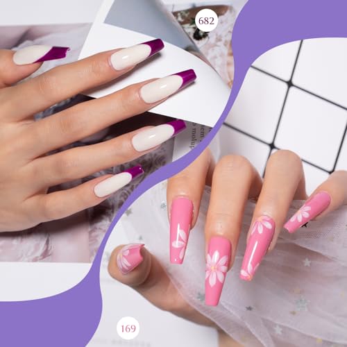 【Purple style】: elegant and noble purple is the popular color all year round. It symbolizes the power of holiness, calmness, love, elegance and supremacy, which can make you show your unique personal charm. You will receive a set of exquisite purple series 6-piece gel nail polish set, color number: 169-685-682-714-716-703