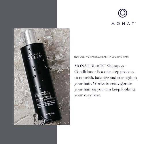 MONAT Black Shampoo + Conditioner – Mens Shampoo and Conditioner 2 in 1 Black Hair Care. A 2-in-1 Shampoo Conditioner Formulated for Optimal Hair Health In One Step. – Net Wt. 237 ml / 8.0 fl. oz.