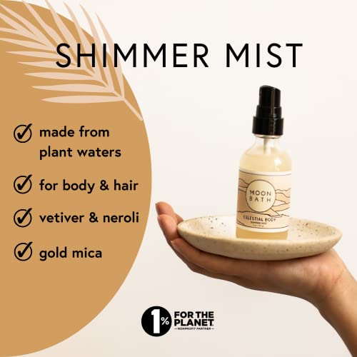 Moon Bath Celestial Body | Shimmering Hair & Body Mist w/Vetiver and Neroli Essential Waters, Sparkly Gold Mica. Organic Beauty. No Synthetic Fragrance, 2 oz.