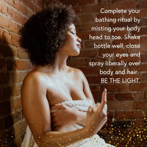 Complete your bathing ritual by misting your body head to toe. Shake bottle well, close your eyes and spray liberally over body and hair.