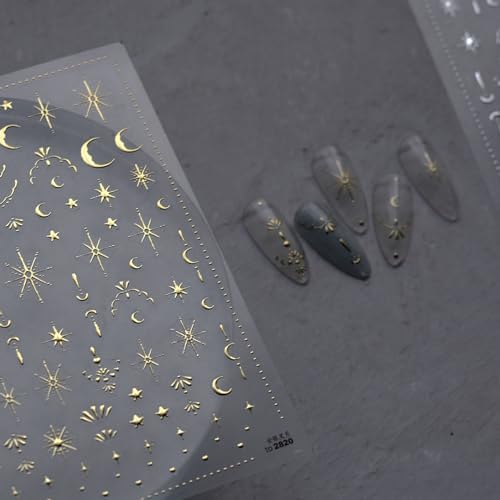 Package Contain: A pack of 1 gold moon star themed 5D nail stickers in different designs, different patterns for you to use and replace in daily life, suitable for various occasions.