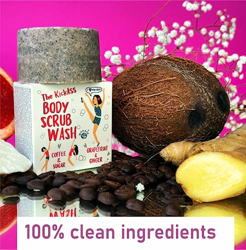 SOOTHING & NOURISHING body scrub with energizing & stimulating scent – Our body scrub bar contains grounded arabica coffee and sugar for gentle exfoliation, coconut and cocoa organic butters for skin nourishing plus the most gentle cleansing ingredients. Ginger and grapefruit essential oils deliver the fragrant scent that will awaken your senses.