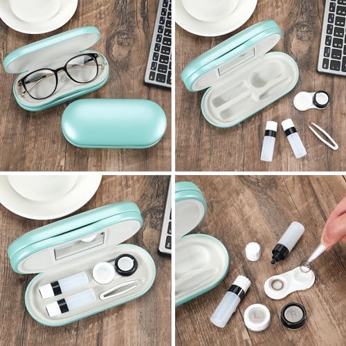 Muf 2 in 1 Double Sided Portable Contact Lens Case and Eyeglasses Case,Dual Use Design with Built-in Mirror,Tweezer and Contact Lens Solution Bottle Included for Travel Kit(Teal)