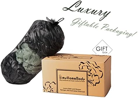 ✔️myHomeBody Luxury Mesh Exfoliating Body Sponge is Made from High Quality PE and Infused with Activated Charcoal Powder