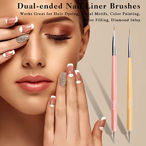 ❣Why You Choose Dpolla Nail Art Brush: It is an ideal choice in the nail-making process, and is also the best choice for gifts for family and friends.This nail brush art brush Stylish and practical design, very suitable for home Double Ended Nail Liner Brush Dotting Pen Nail Art Point Drill Drawing Tools.