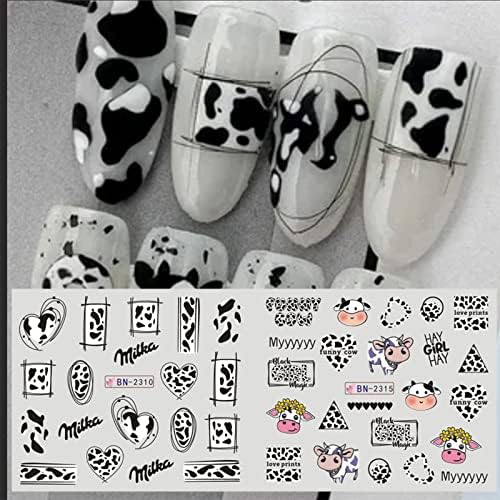 MAIOUSU STORE Nail Art Stickers, 12 Sheets Cute Milk Cartoon Water Transfer Nail Decals Nail Stickers with Assorted Patterns Milk Cow Animal Leopard Heart Design DIY Nail Art Decoration