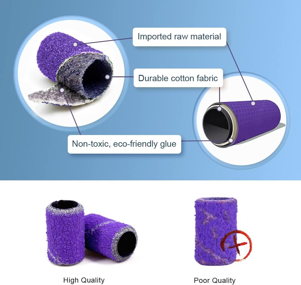 Portable storage box: The nail drill bit set of sanding bands comes with transparent storage box. The blue purple and red pink sanding bands are in three different separators. It’s easy to pick up the size you need and take away to do your nails anywhere.