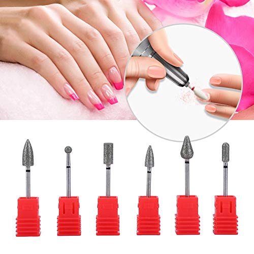 Nail Drill Bits Set, 6 pcs Nail Grinding Sanding Bit Set Nail Electric Drill Manicure Machine Accessory Tools Nail File Bits Nail Gel Nail Polish for Nail Dead Skin Removal Cone Drill Bits for Nails