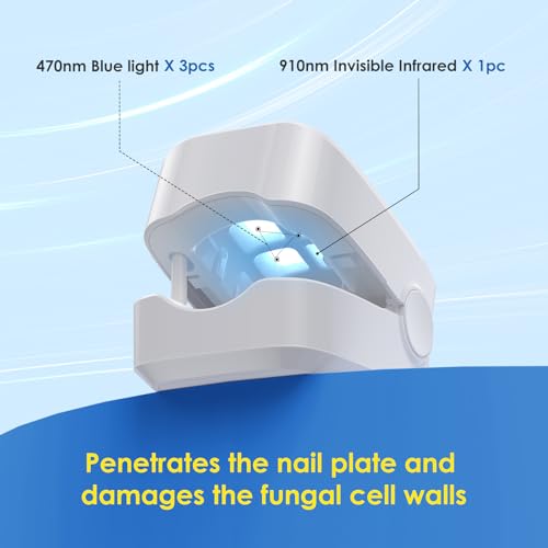 👍Principle: 910nm infrared light and 407nm blue light shines light into the toenail causing the temperature of the nail plate to rise to 43℃ to 51℃, resulting in thermal damage and thus producing stunning effect.