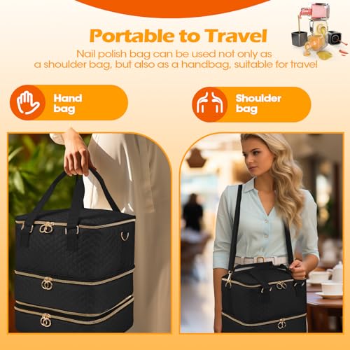Nail Polish Organizer Case – Three Layer Nail Polish Storage Bag with Adjustable Dividers Holds 84 Bottles Nail Polish Nail Lamp Nail Kit Supplies Organizer Box – Black