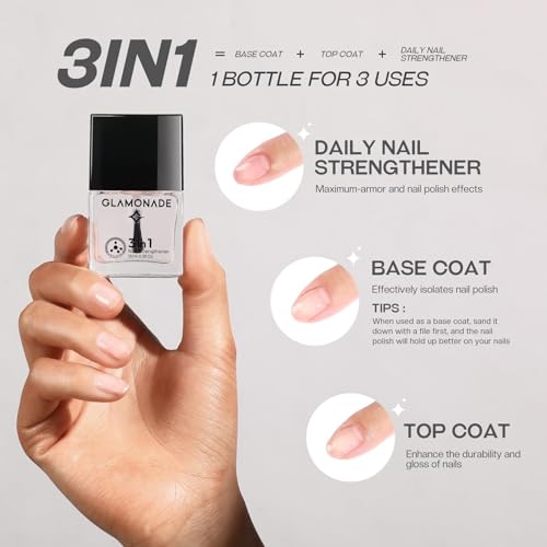 Nail Strengthener and Growth Hardener: 3 in 1 Nail Hardener for Thin Nail Treatment Repair Damaged Nails Nail Growth Oil Nail Care with Quick Dry Clear Nail Polish Base Top Coat 0.5 fl oz
