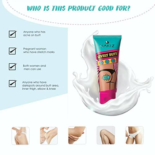 NAKIZ Lively Butt Cream for Stretch Mark Darkspots Knee Elbow Underarm Intimate Area 100 Gram Award Winner Authentic Guaranteed(3 Pack)