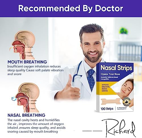 Nasal Strips for Snoring, 100 Pcs Extra Strength Nose Strips for Breathing, Anti Snoring Device for Snoring Solution, Relieve Nasal Congestion for Men & Women, Improved Airflow and Comfortable Fit