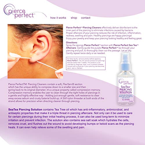 EASY TO USE |Spray with SeaTea Piercing Solution; guide threader tip through piercing; pull to clean and clear passage; compact and portable for aftercare on-the-go