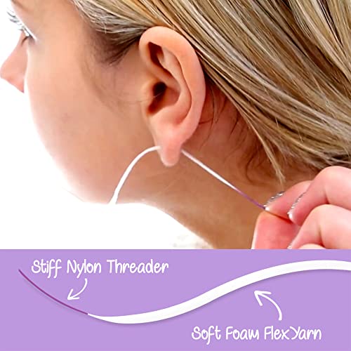 SOFT AND FLEXIBLE FLOSS | Unique FlexYarn construction with compression memory; compresses down to smaller size and springs back to original diameter; stiff nylon threader guides floss through piercing; gentle and convenient thread-and-pull action