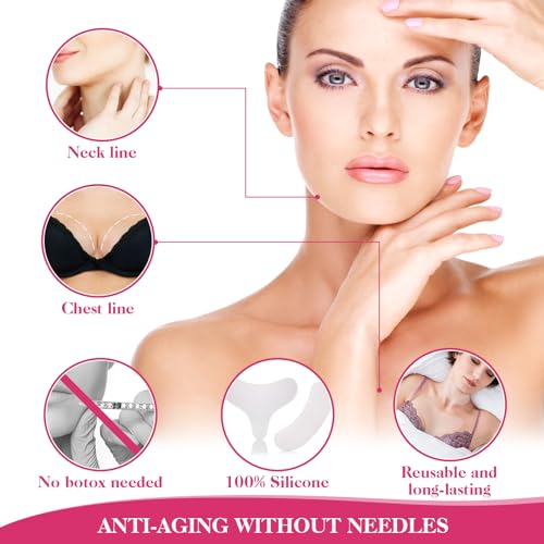 【Non Invasive Natural Wrinkle Treatment】: Still seeing options for wrinkles aside from Botox? These advanced silicone decollete anti wrinkle neck pads help to improve the appearance of hydration and rejuvination of your delicate decolleté skin overnight.