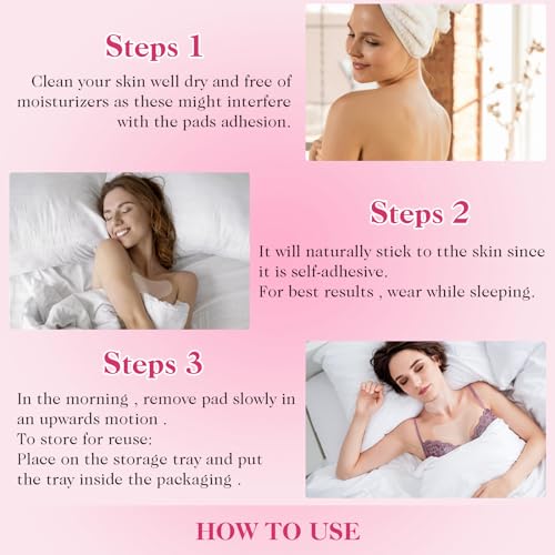 【Highly Recommended for Ladies over 30】:if you have a large chested or you are a side sleeper you have tried your best to take care of my skin. I highly recommend these!! Make sure you put it on a clean and dry chest and when you get up, wash it with mild soap and water and let air dry upside down (sticky side up) somewhere where it won’t get dusty or anything.