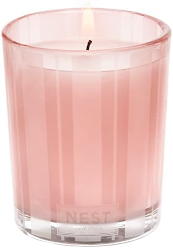 Designed to burn cleanly and infuse your home with exceptional scent, the NEST New York Himalayan Salt & Rosewater Scented Votive Candle elevates everyday living and entertaining. This small decorative candle features pink-tinted wax housed in a glass vessel of the same color etched with elegant, frosted stripes that complements any décor. Ease your mind and soothe your spirit as you surround yourself with notes of rosewater, geranium, salted amber and white woods. This serene blend leaves you feeling comforted and relaxed. Measuring 2 inches wide by 2.5 inches high, this scented votive candle has a 20–28 hour burn time—ideal for all those seeking big scents in small spaces. As part of an ongoing commitment to cruelty-free practices, NEST New York has been certified by PETA, a leading organization that certifies brands that operate without animal testing. NEST New York’s fragranced home, perfume, and body care collections transform the everyday by artfully blending notes of the familiar, the exotic, and the unexpected for a fragrance experience like no other. Let NEST New York scent your world.