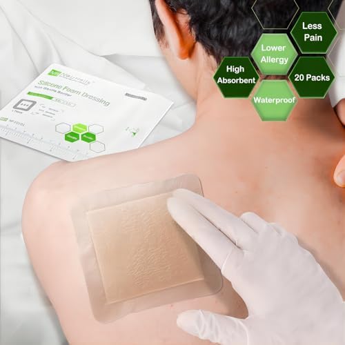 NeuHeils Silicone Foam Dressing with Gentle Border 4”x4”, 20 Pack for Bed Sore Leg Ulcer, High Absorbency Large Waterproof Silicone Wound Bandage