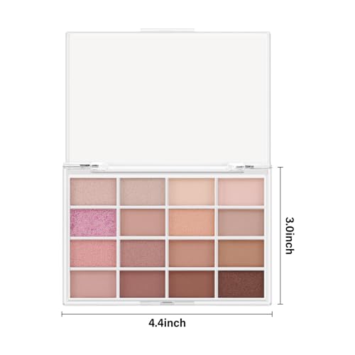 Neutral Pink Eyeshadow Palette, Brown Powder Eye Shadow Makeup, Matte Shimmer Shades Create Natural Eye Look, 16 Shades