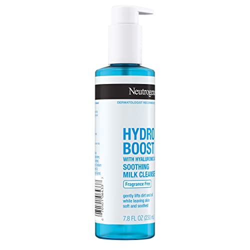 Neutrogena Hydro Boost Soothing Milk Facial Cleanser with Hyaluronic Acid, Hydrating Face Wash Gently Lifts Dirt & Oil Leaving Soft Soothed Skin, Hypoallergenic, Fragrance-Free, 7.8 Fl. Oz