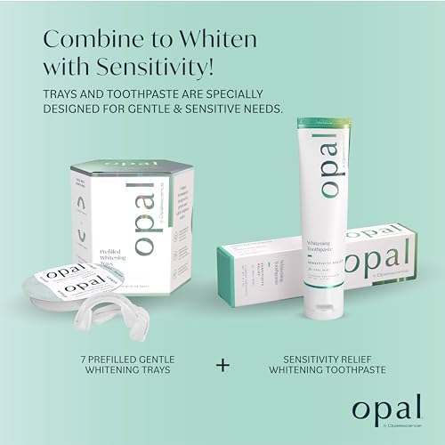 OPAL BY OPALESCENCE TEETH WHITENING KIT: Includes Opal Sensitive Toothpaste 4.7 Oz. Additionally, this kit includes 14 single-use trays (7 treatments for upper and bottom teeth), pre-filled with teeth whitening strips made with gel, and ready to work their magic. It’s easy to use, eliminating the need for whitening guesswork.