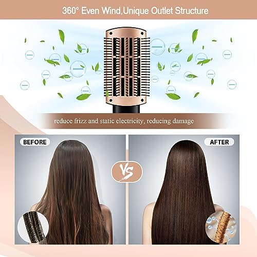 🍰【CERAMIC COATING】Hair dryer brush 360° even blow, reduce frizz and static electricity, reducing damage&better at the same time condition your hair; Ceramic coating saturates the airflow, distributes heat evenly, penetrates the hair quickly, and accelerates drying from the inside out to help you create healthy hair. Designed with Nylon Pin&Tufted Bristles, it can prevent hair tangles, improve volume and shine of hair.
