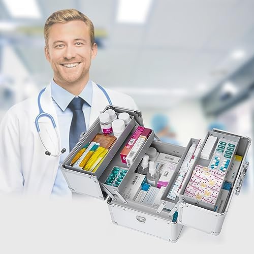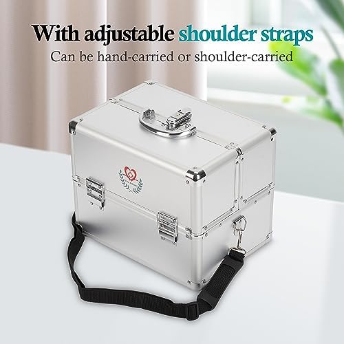 Nisorpa 3-Layer Large Locking Medicine Storage Box,Portable First Aid Storage Bin with Shoulder Strap Double Open for Home and Travel,11.81 x 8.54 x 9.45 Inches