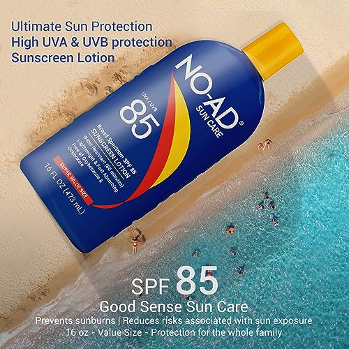 NO-AD SPF 85 Sunscreen Lotion | Broad Spectrum UVA/UVB Protection | Water Resistant | Octinoxate & Oxybenzone Free with moisturizing Vitamin E and Aloe 16oz