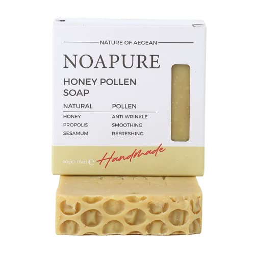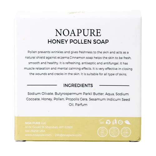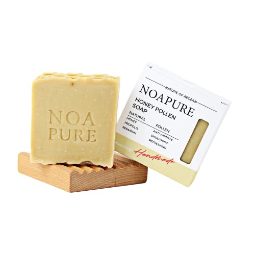 NOA PURE – Natural Honey Pollen Bar Soap – Handmade Vegan Soap with Premium Essential Oils for Face, Hand & Body – Moisturizing Cold Pressed Soap with All Natural Ingredients to Nourish and Soften