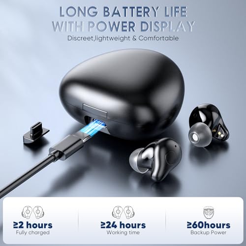 【Long-lasting battery life】Charge your hearing aids for just 2 hours and enjoy up to 24 hours of use,with an additional 60 hours of standby power.Monitor your battery status through the app for added convenience in your daily life.No need to worry about running out of power when you need it most.