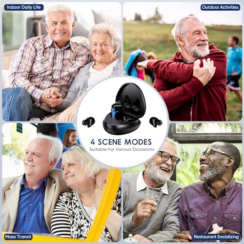 【Smart app control】Take control of your hearing experience with the YaoSound app. Adjust volume,choose from four different scene modes,and even generate a personalized hearing profile. Whether you’re indoors,outdoors,on public transportation,or in a noisy restaurant,these hearing aids have got you covered. Perfect for rechargeable adults and seniors looking for convenience and customization.