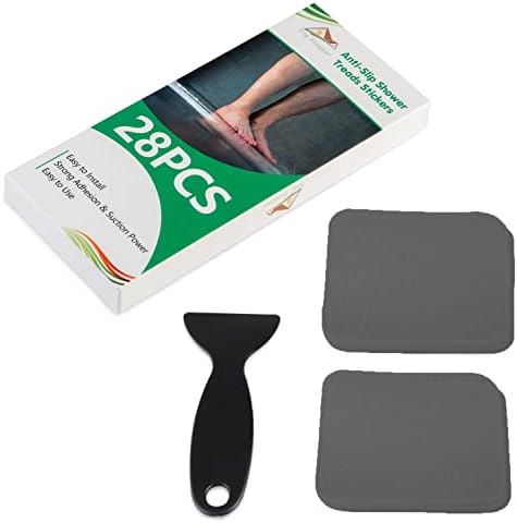 Non Slip Bathtub Stickers 28 PCS Adhesive Anti Slip Shower Stickers for Bath Tub,Bathroom,Stairs with Premium Scraper (Grey)