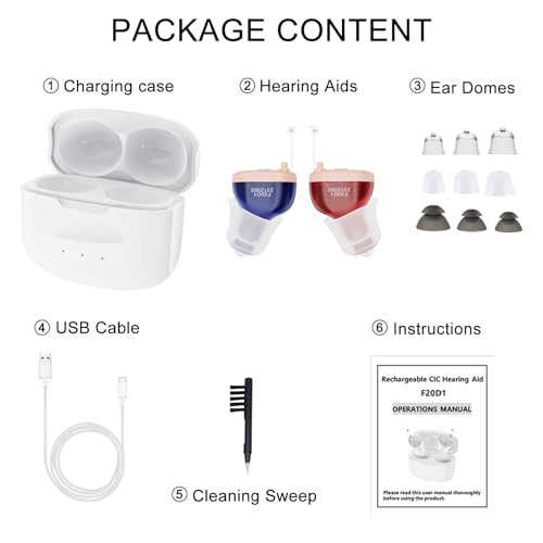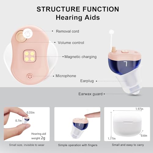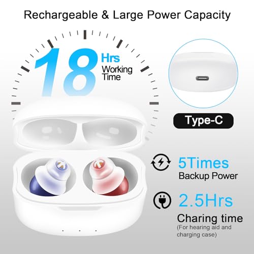 【Invisible Design, Snugly Fit】Our invisible hearing aids allow you to comunicate with others with more confidence, no one will notice your mini hearing aids . Soft earplugs with 9 domes sizes for snugly and comfy fit, ensuring you can wear the hearing aids freely at anytime and anywhere without dropping and embarrassment.