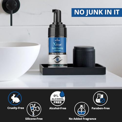 NOVEHA XStye Eyelid Foaming Cleanser – Fast Stye Eye Relief – Formula With Tea Tree Oil – Daily Eyelid and Eyelash Wash For Stye Eyes, Eyelash, & Skin Dryness (3.38 fl oz) – 100mL