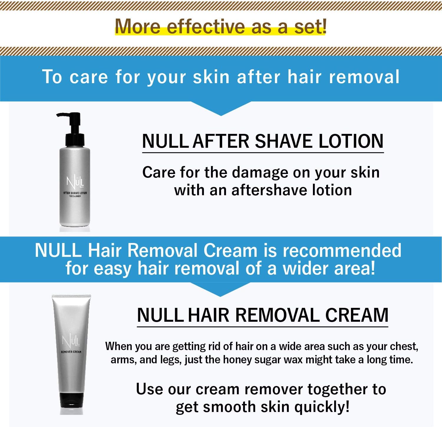 [Contents of set] NULL Honey Sugar Wax for Men×1、Instructional Manual、Spatula ×30、Wax Paper ×60( 30 sheets×2)。It includes an easy-to-understand instructional manual, so even beginners can easily use the hair removing wax.