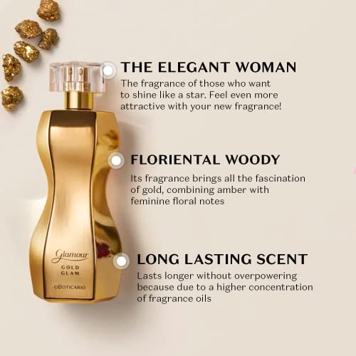 O BOTICARIO Glamour Gold Glam Eau de Toilette, Long-Lasting, Sweet and Floral Fragrance Perfume for Women, 2.5 Ounce