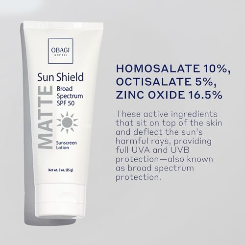 Obagi Sunscreen Sun Shield Matte Broad Spectrum SPF 50 Sunscreen, combines UVB absorption and UVA protection, 3 oz