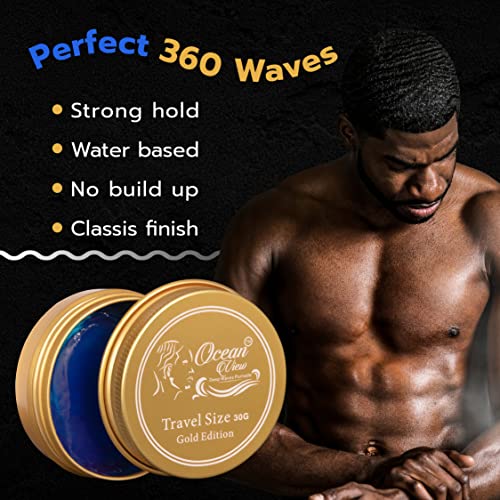 OCEAN VIEW DEEP WAVES POMADE, Gold Edition 360 Wave Grease for Men Moisturizes, Controls and Styles Black Hair – Water Based Wave Builder Pomade for Men Tames Your Crown During Wolfing (30 grams)