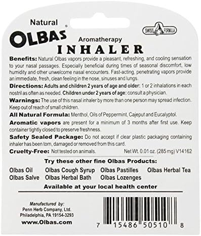 “Get the Power to Breathe, Naturally! From Basel, Switzerland, Olbas oil remedies are famous around the world for their high quality and effectiveness. The Olbas Inhaler uses their special formula of menthol plus oils of peppermint, eucalyptol and cajeput to provide respiratory support year-round.